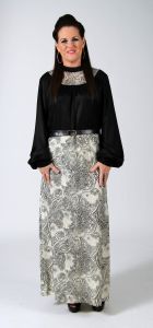 Chest: 90cm; waist: 74cm; hips: free; length: 139cm